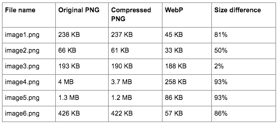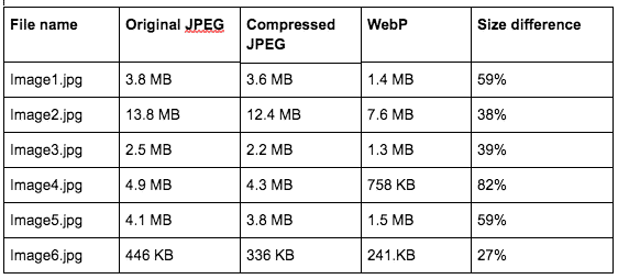 Lo que no ve, a menos que verifique el tamaño del archivo, es que las imágenes WebP son más de un 30% más pequeñas que las JPEG.